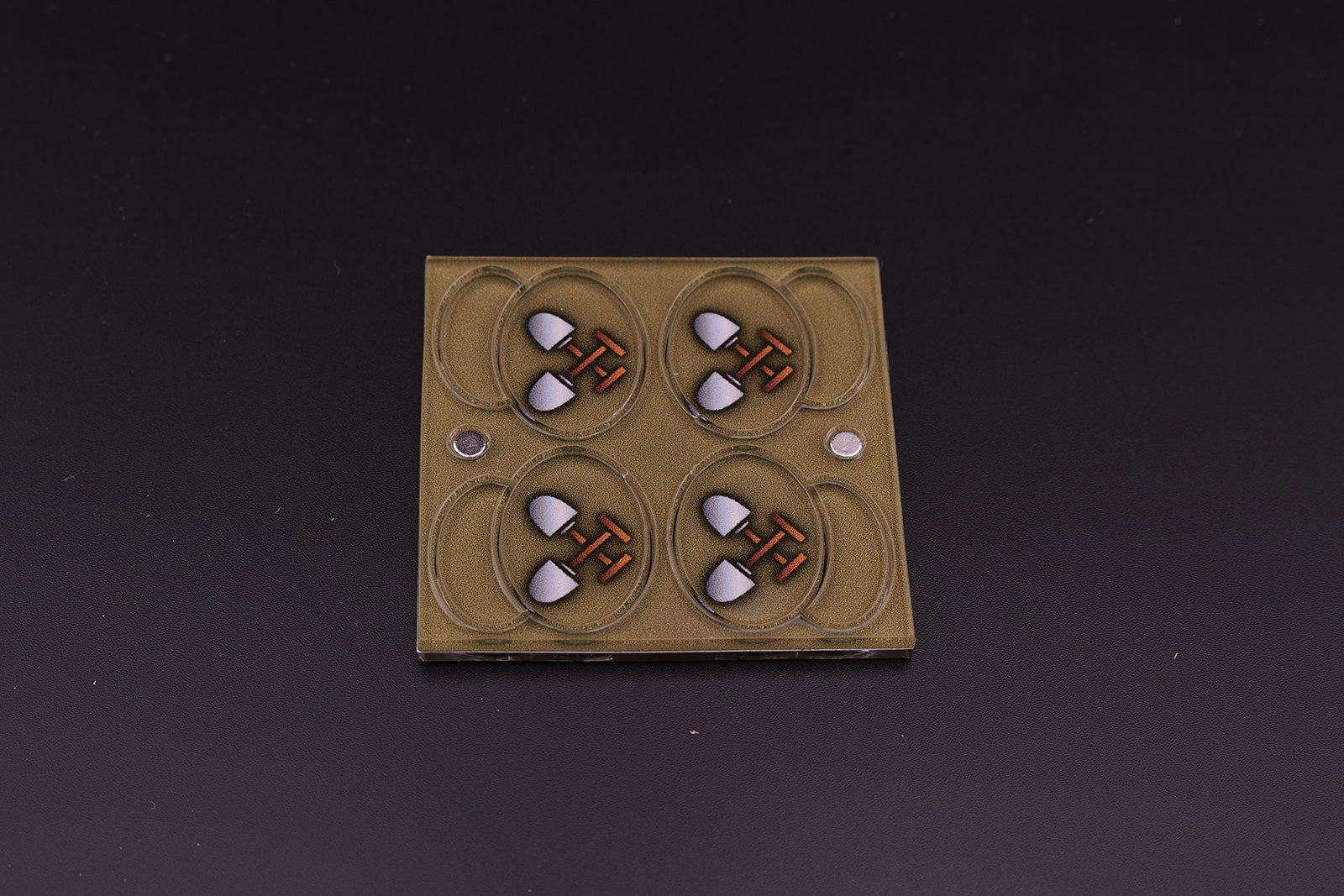The module has two magnets the enable it to stack with other modules or attach to a Token Tray.