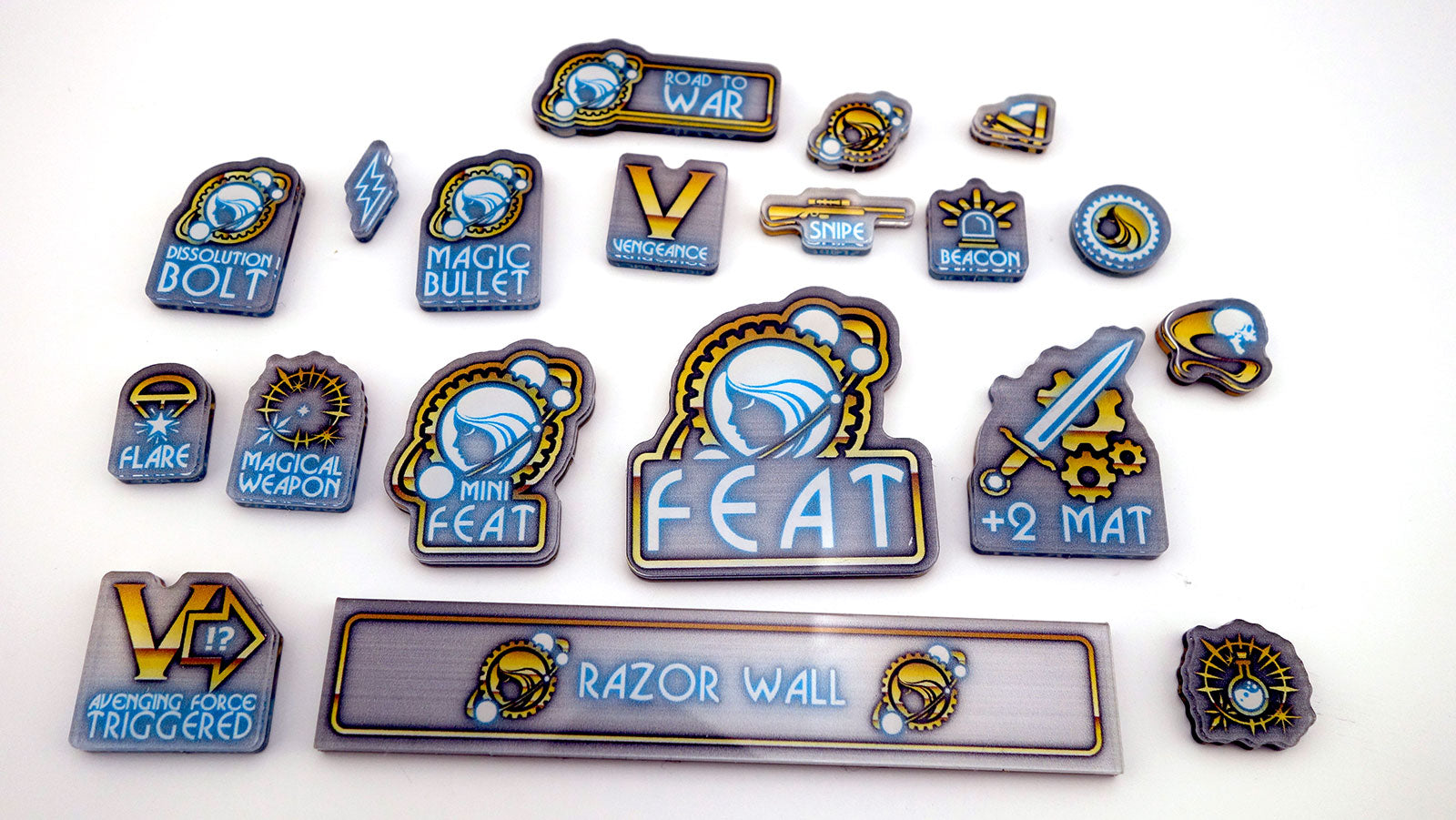 These tokens are produced with our newly developed laminating method. The result is an extremely durable token set. The main reason for this is that the tokens do not have exposed print surface.