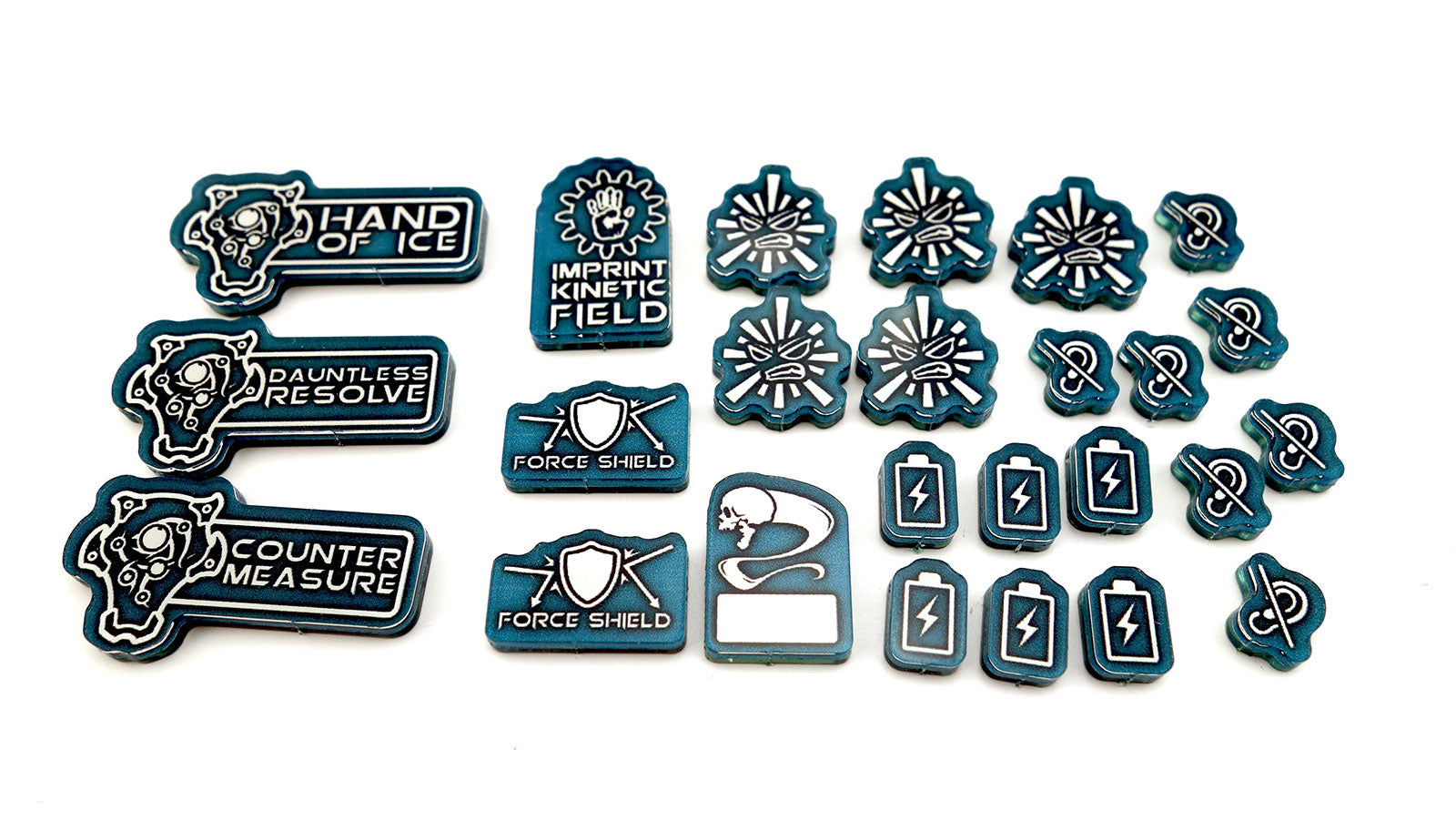 These tokens are produced with our newly developed laminating method. The result is an extremely durable token set. The main reason for this is that the tokens do not have exposed print surface.