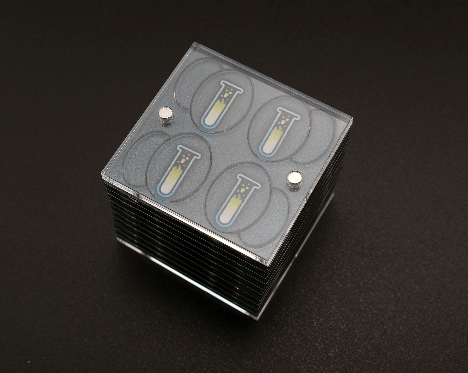 The module has two magnets the enable it to stack with other modules or attach to a Token Tray.