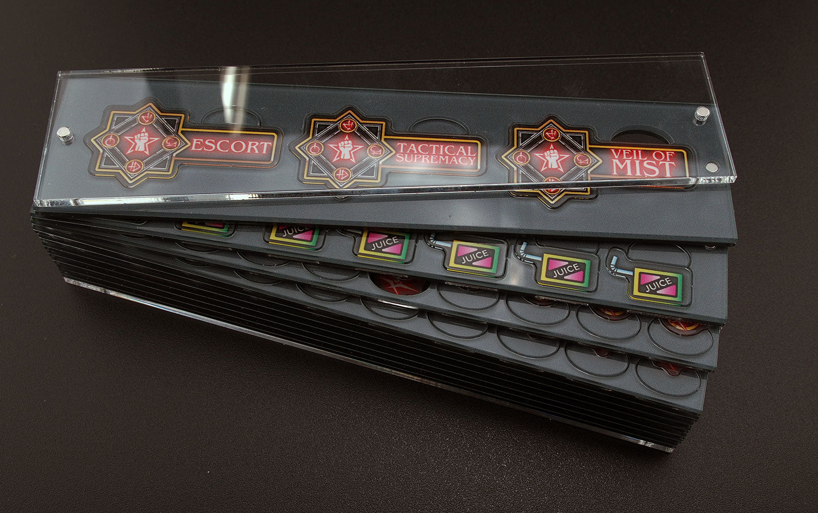 The module has two magnets the enable it to stack with other modules or attach to a Token Tray.