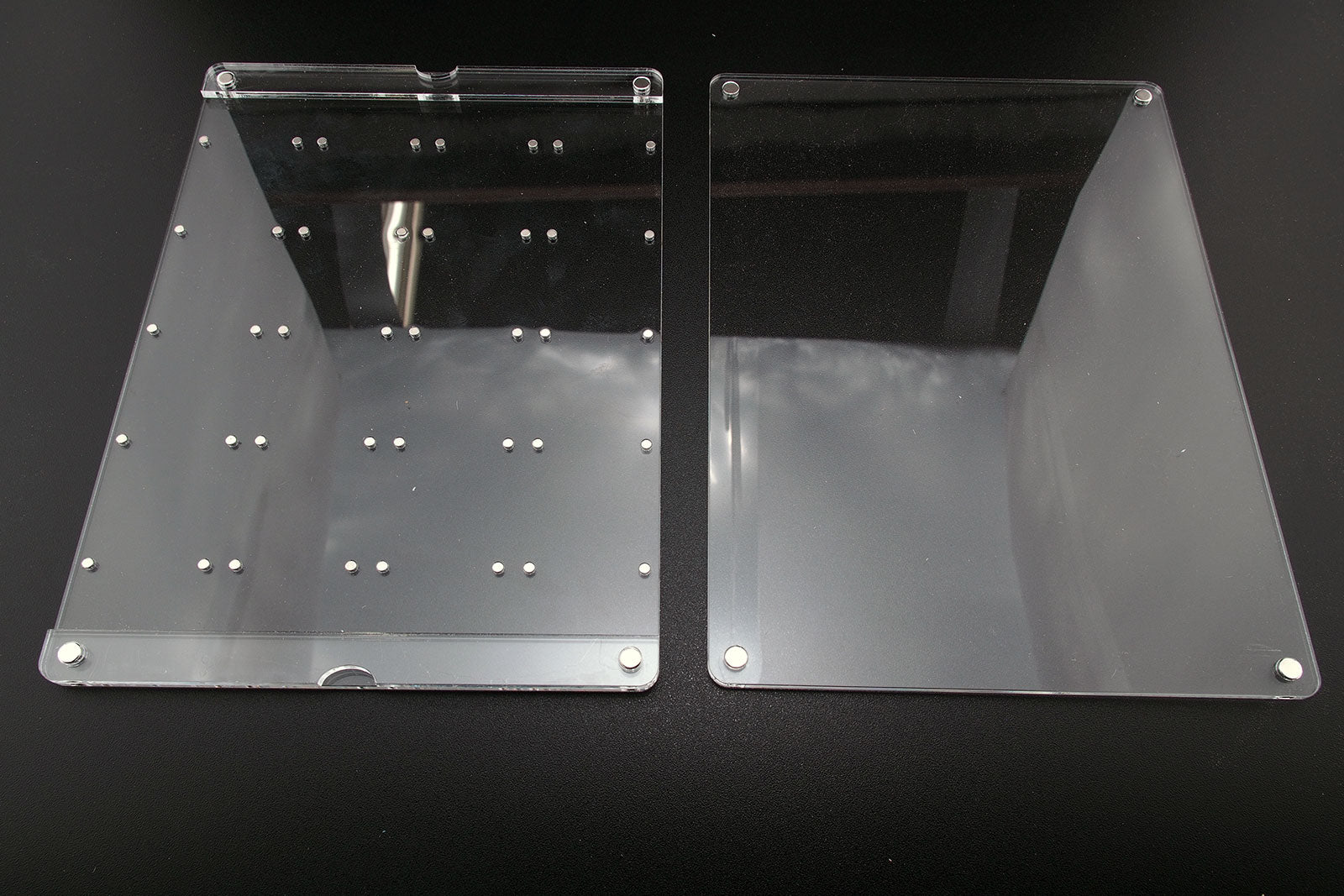 The tray has magnets that correspond to the 1x1 module grid (5x4).